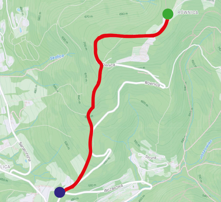 Uwaga! Trasa częściowo prowadzi przez drogę.
